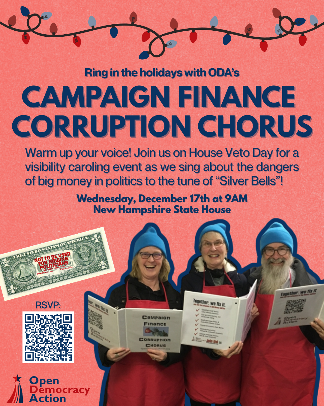 Join us on December 17th at 9AM at the State House as we raise our voices (literally!) and call for a democracy powered by voters, not unlimited cash.
