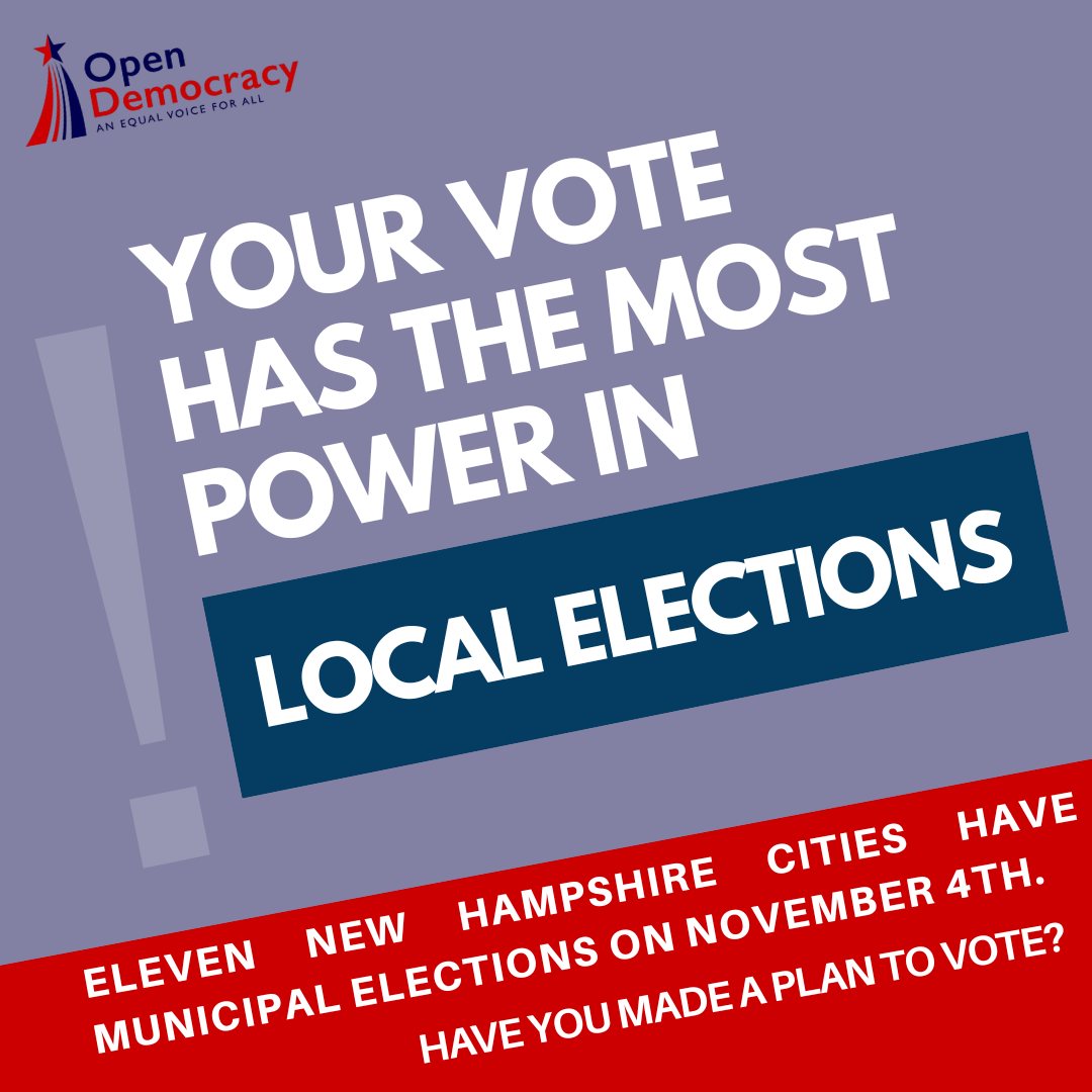 5 days remain until November 4th, Election Day in 11 NH cities! These are Berlin, Claremont, Concord, Dover, Keene, Laconia, Manchester, Nashua, Portsmouth, Rochester, and Somersworth. Make sure you have a plan to vote if you reside in one of these cities, and encourage your friends and family to do the same. 🗳️